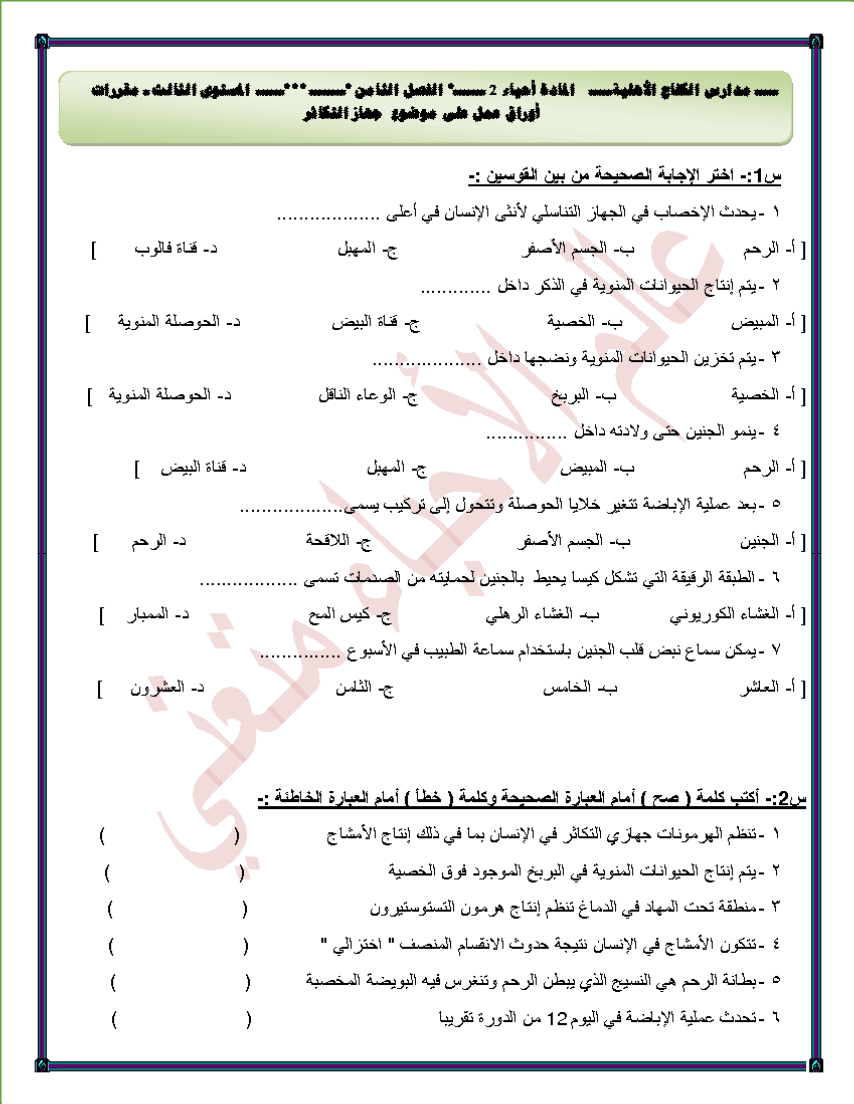عالم الأحياء متعتي أوراق عمل أحياء 2