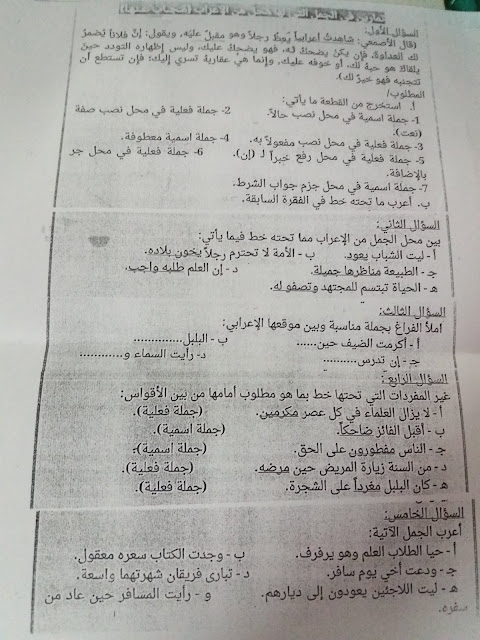 تمارين في اللغة العربية للصف الحادي عشر الفصل الثاني 2017