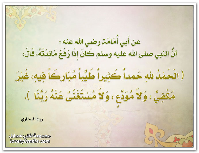 كان النبي إذا رفع مائدته قال الحمد لله حمدا كثيرا طيبا مباركا فيه غير مكفي ولا مودع لفلي سمايل