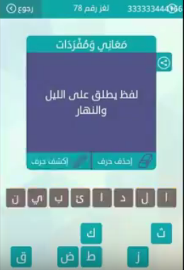 جواب لغز لفظ يطلق على الليل والنهار لغز رقم 78 من المجموعة التاسعة من لعبة وصلة صقور الإبدآع