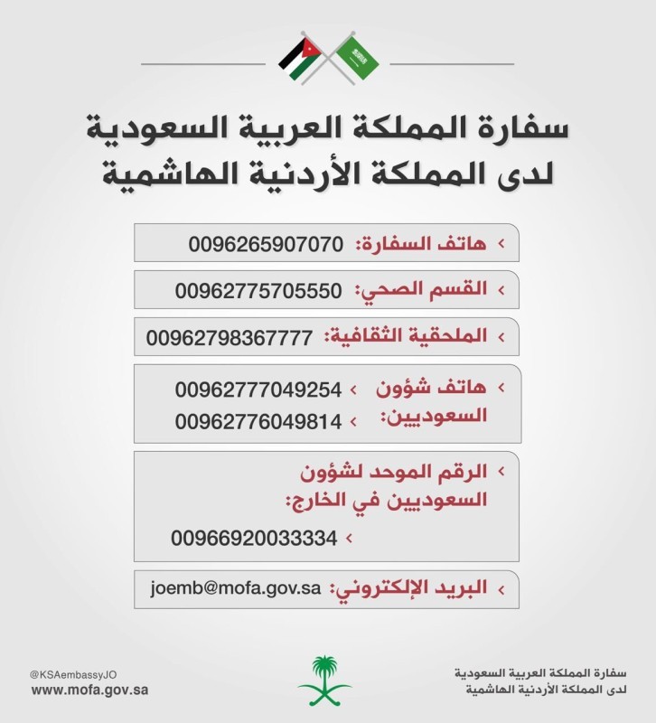 الخارجية تعلن أرقاما إضافية للتواصل مع السفارة الأردنية في السعودية هلا أخبار