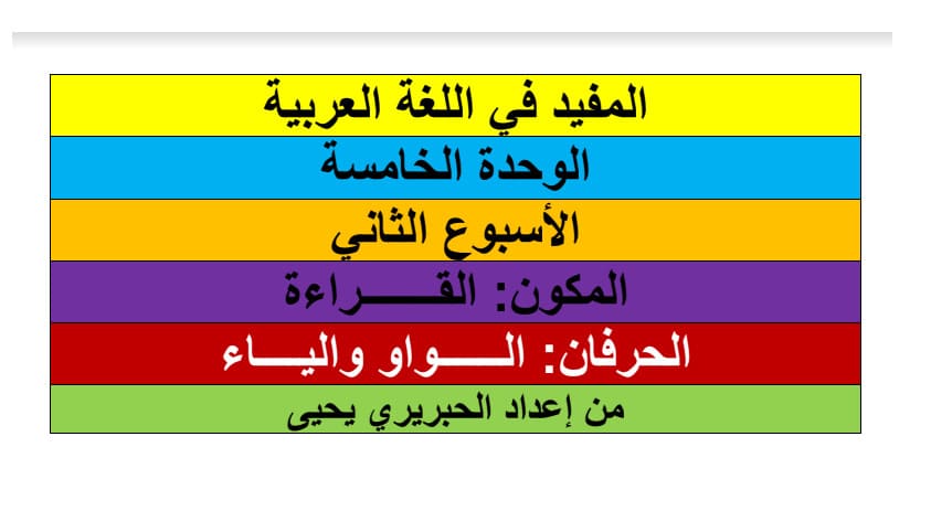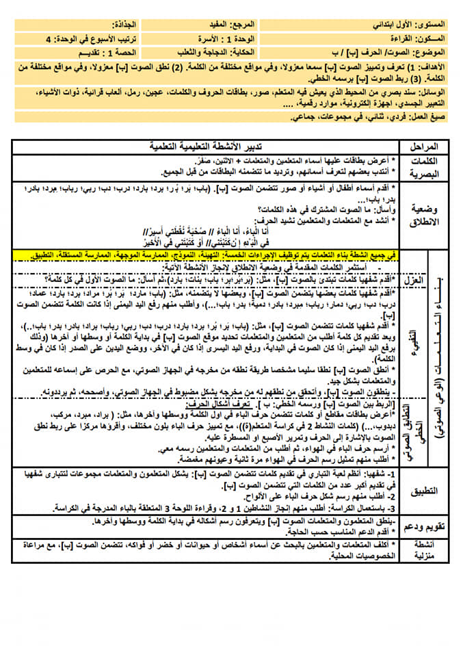 الأسبوع 5 الوحدة 1 تقويم ودعم مرجع المفيد في اللغة العربية المستوى الاول اتبتدائي