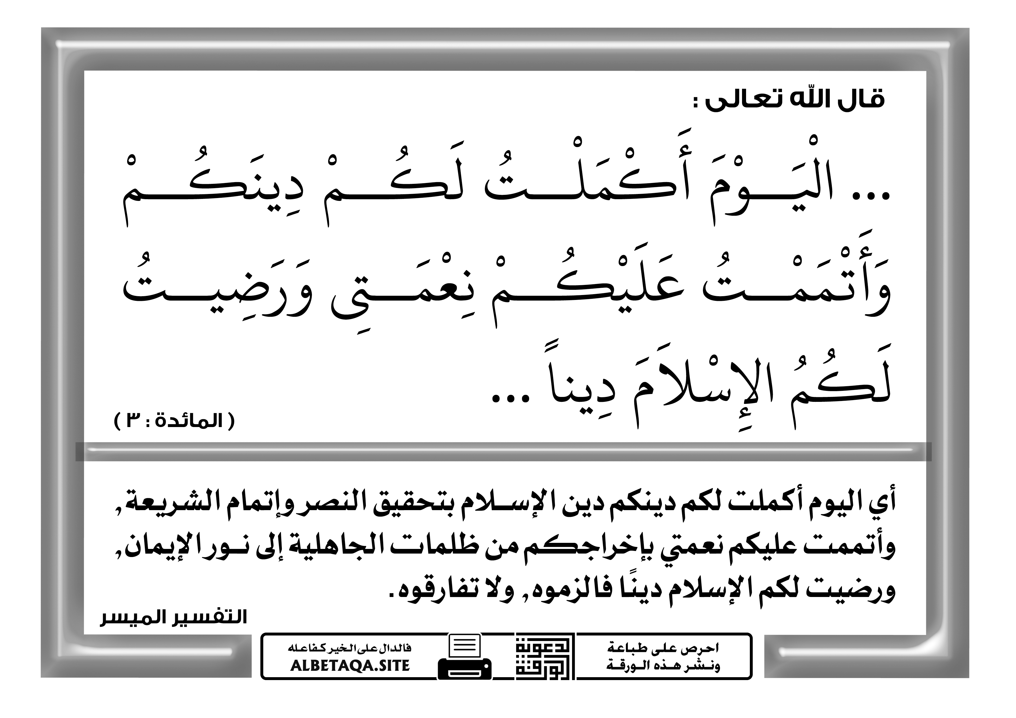 اليوم أكملت لكم دينكم موقع البطاقة الدعوي