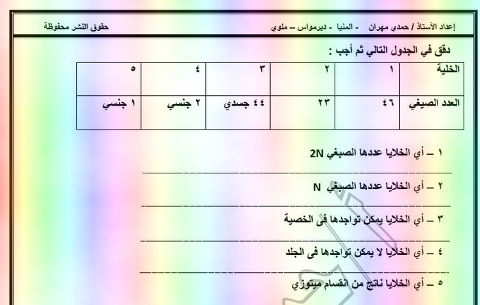 اسئلة للتدريب على مادة الاحياء 1 ثانوي الفصل الاول وراثة الاحياء اول ثانوى المنهج المصري