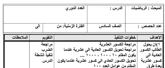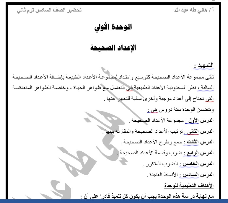 تحضير رياضيات للصف السادس الفصل الأول وفق النظام الجديد ارض اليايا