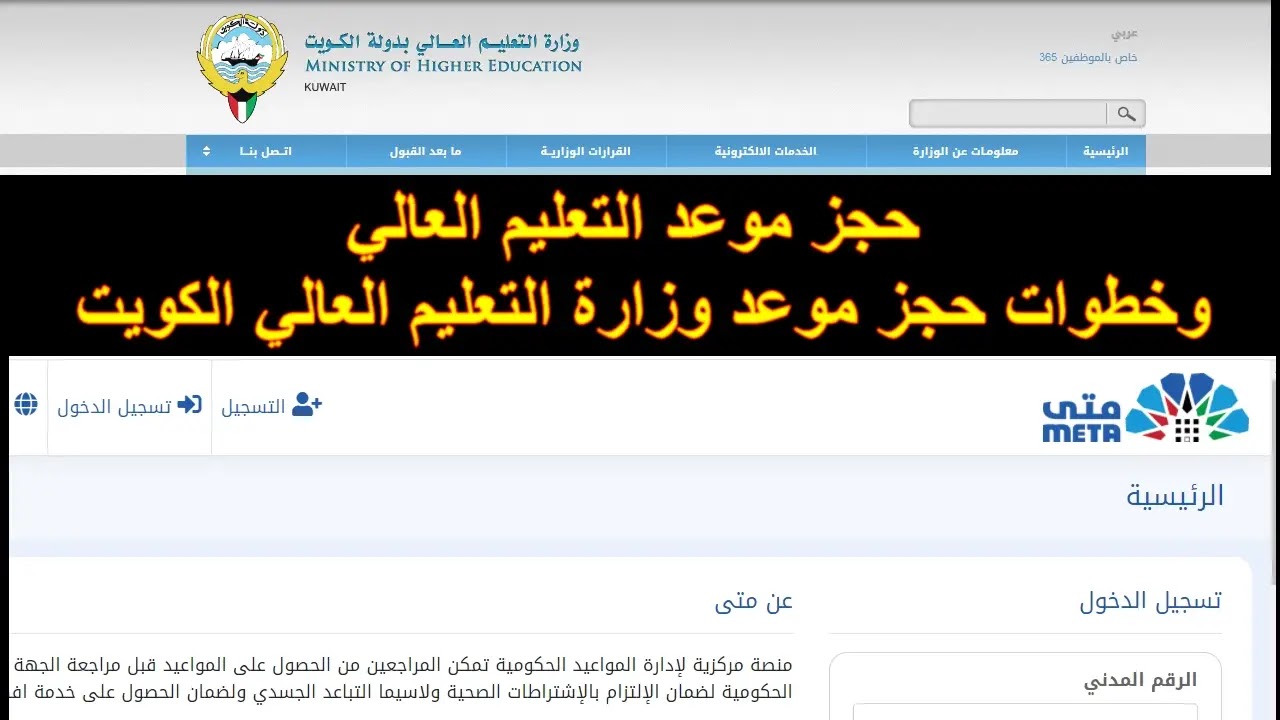 حجز موعد التعليم العالي وخطوات حجز موعد وزارة التعليم العالي الكويت