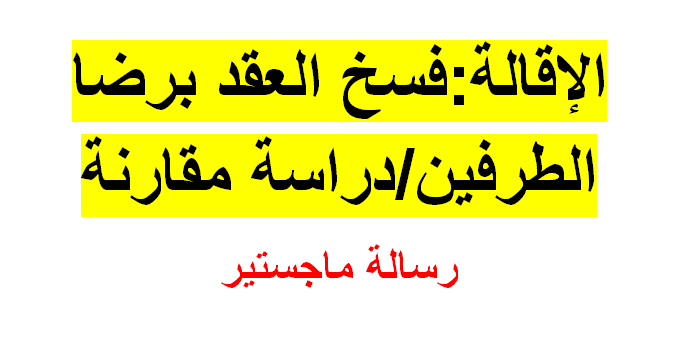 الإقالة فسخ العقد برضا الطرفين دراسة مقارنة Pdf