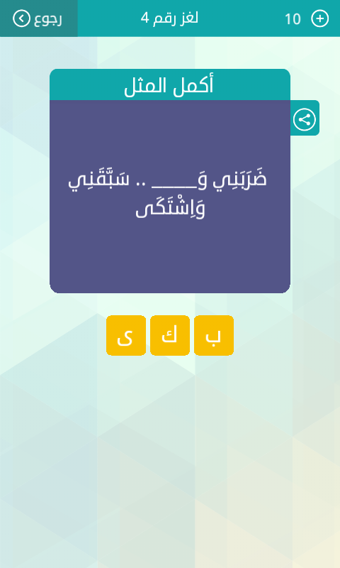 حل سؤال اكمل المثل ضربني و سبقني واشتكى لغز رقم 4 من لعبة وصلة من المجموعة الاولى صقور الإبدآع