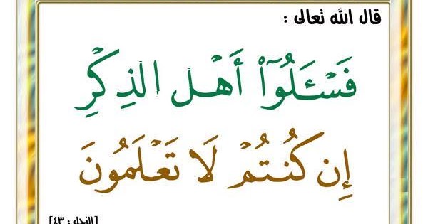 ف اس أ ل وا أ ه ل الذ ك ر إ ن ك ن ت م ل ا ت ع ل م ون