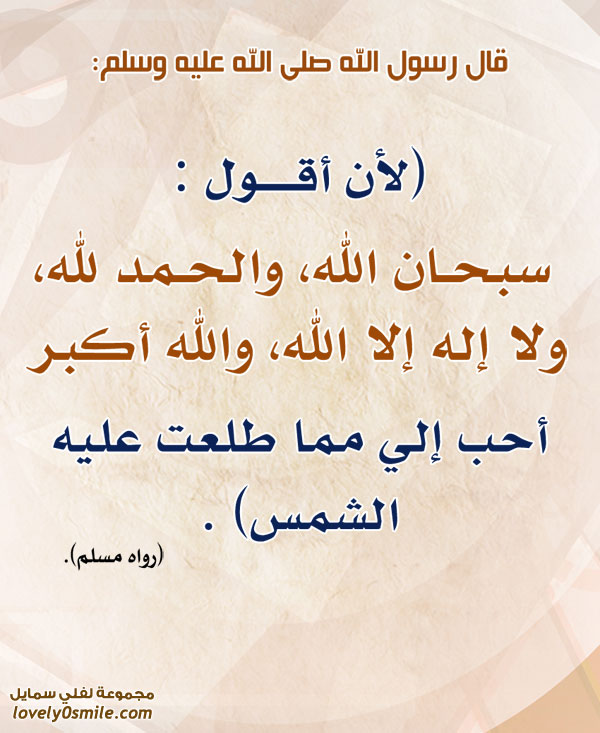 لأن أقول سبحان الله والحمدلله ولا إله إلا الله والله أكبر أحب إلي لفلي سمايل