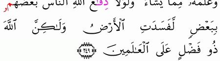 ولولا دفع الله الناس بعضهم ببعض لفسدت الأرض ولكن الله ذو فضل على العالمين