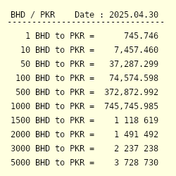 1 Bhd To Pkr Exchange Rate Bahraini Dinar To Pakistani Rupee Currency Converter Live Calculator